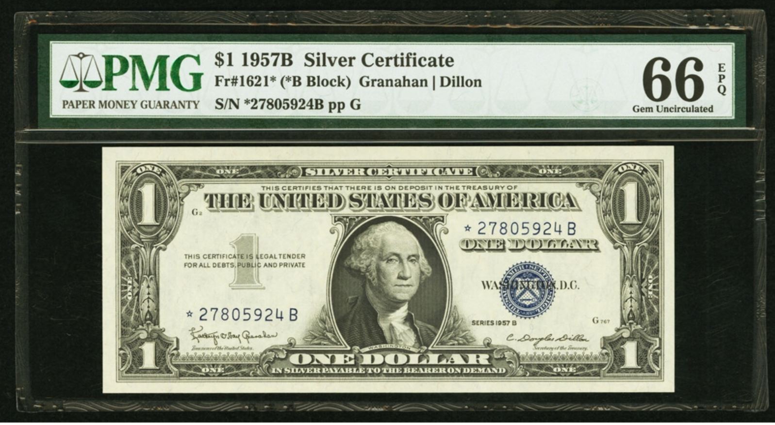 One 1957B $1 STAR Silver Certificate PMG 66EPQ.