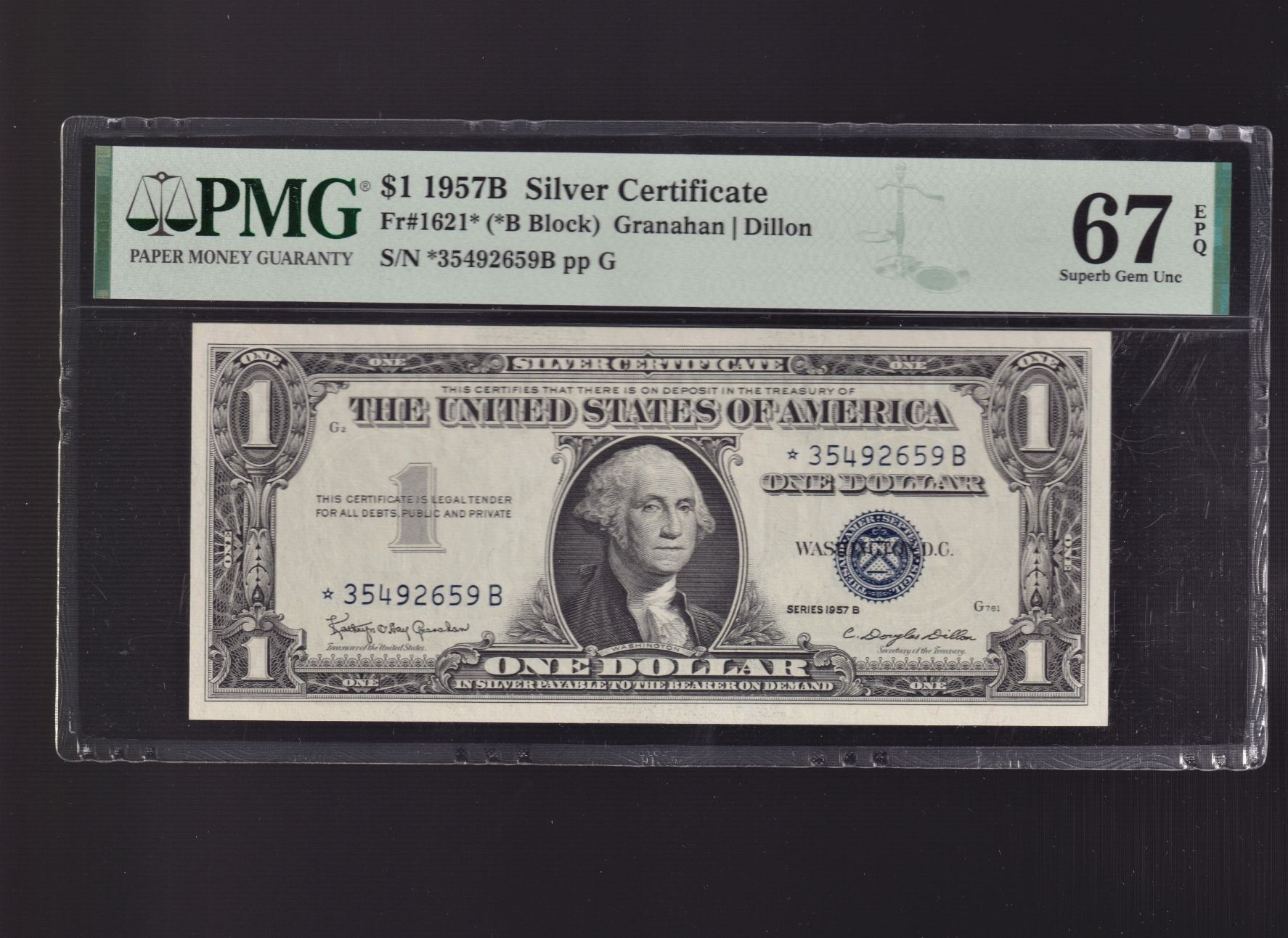 One 1957B $1 STAR Silver Certificate PMG 67EPQ.