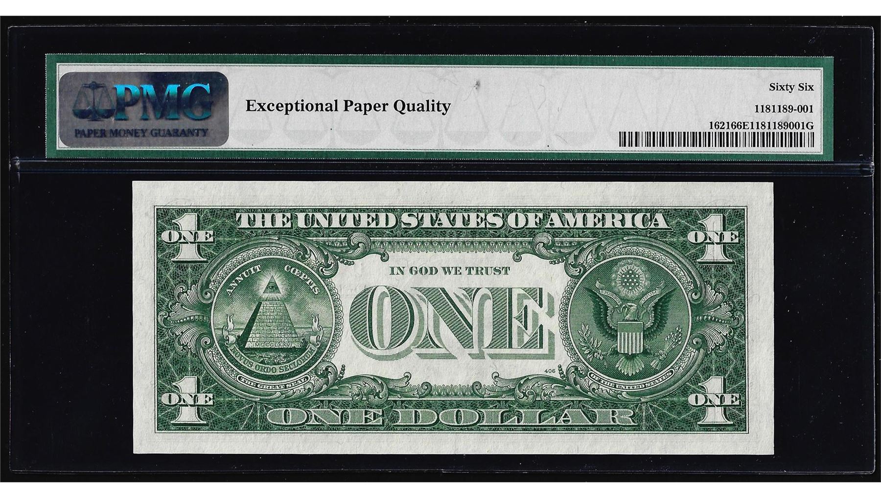 One 1957B $1 Silver Certificate Note Mismatch Serial Number PMG Gem Uncirculated 66EPQ. PMG Certified.