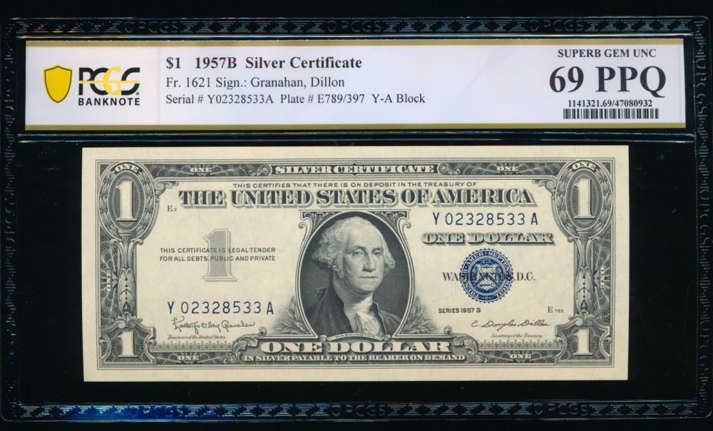 One 1957B $1 Silver Certificate PCGS 69PPQ.