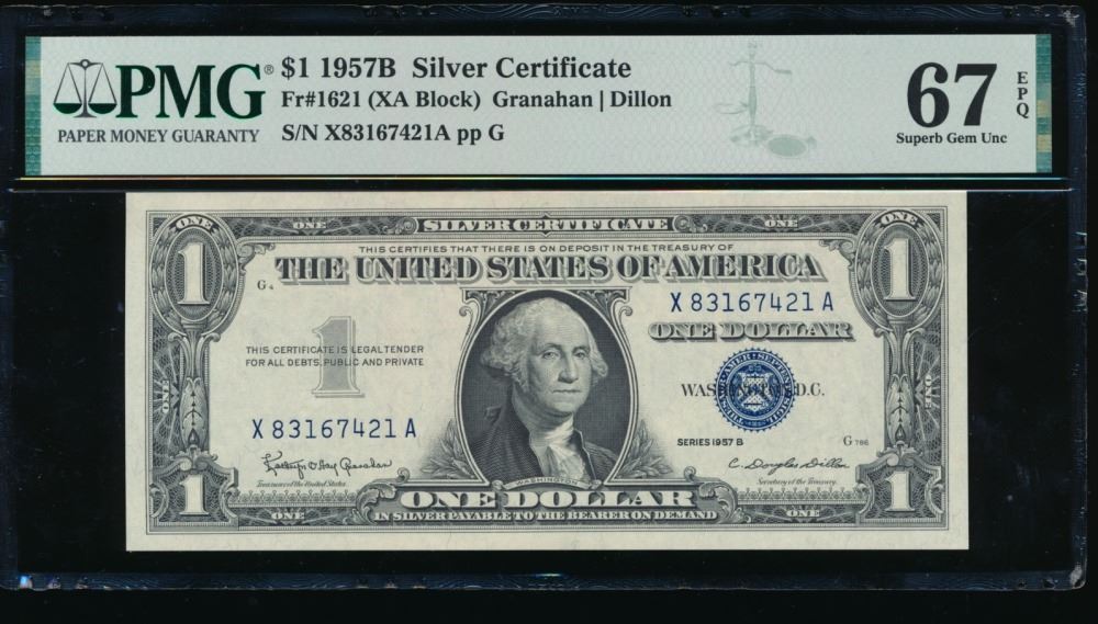 One 1957B $1 Silver Certificate PMG 67EPQ.