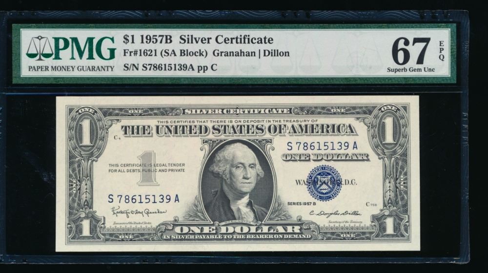 One 1957B $1 Silver Certificate PMG 67EPQ.