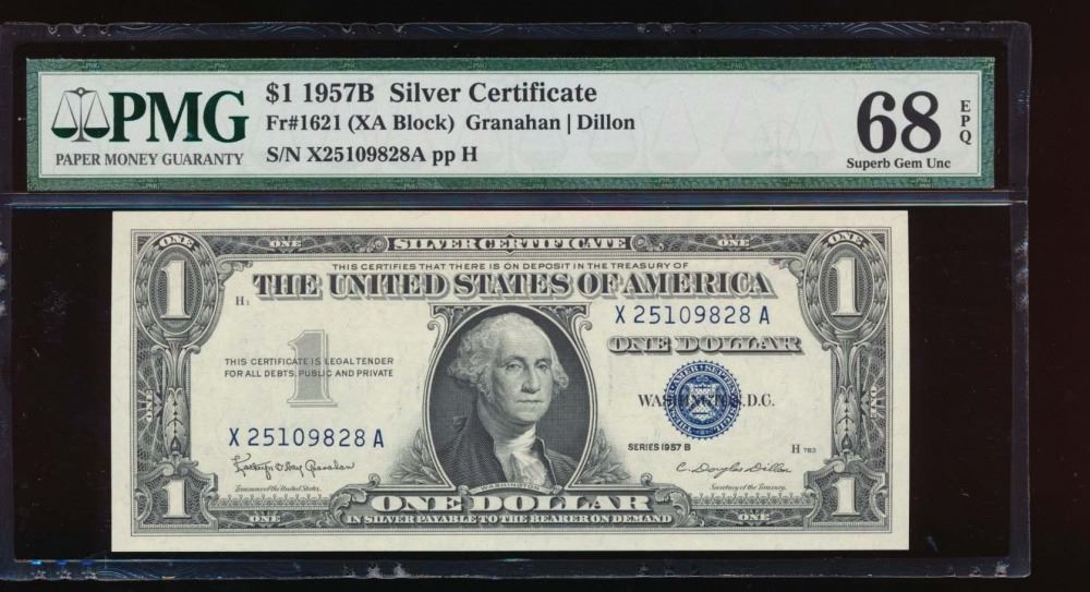 One 1957B $1 Silver Certificate PMG 68EPQ.