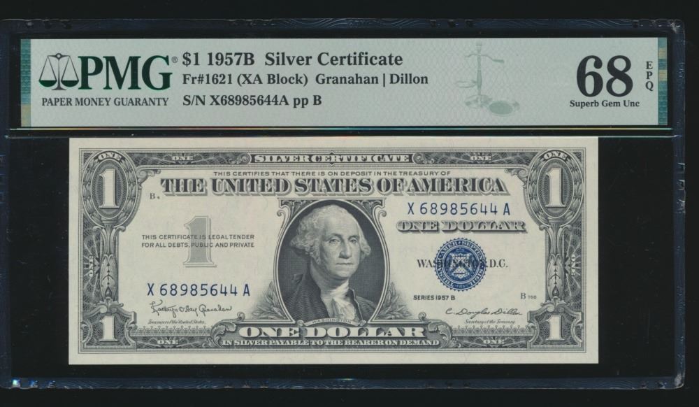 One 1957B $1 Silver Certificate PMG 68EPQ.
