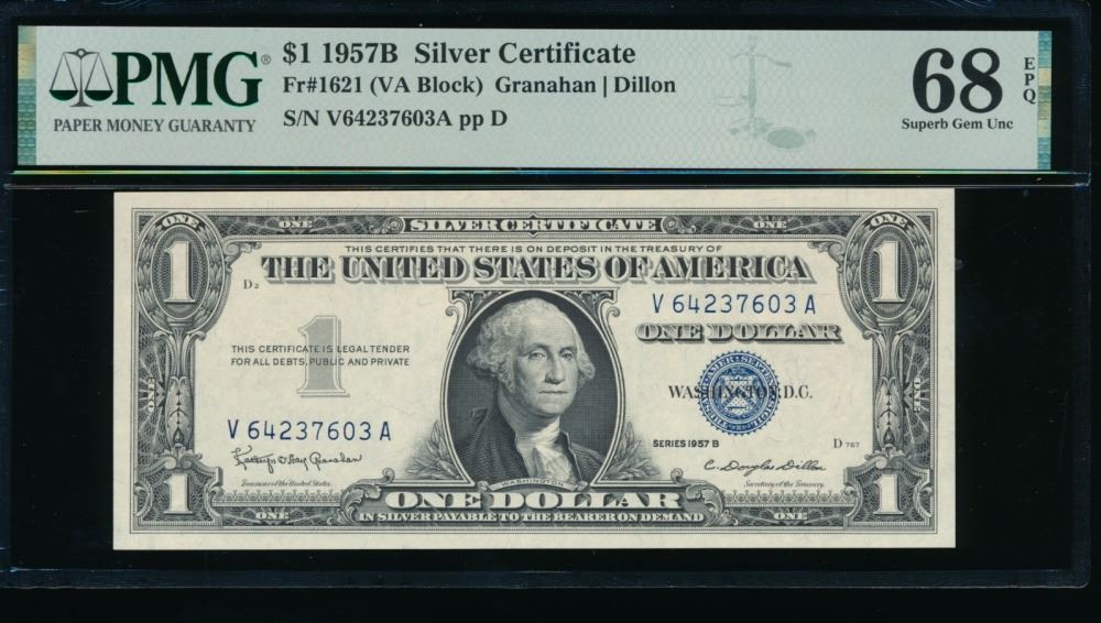 One 1957B $1 Silver Certificate PMG 68EPQ.