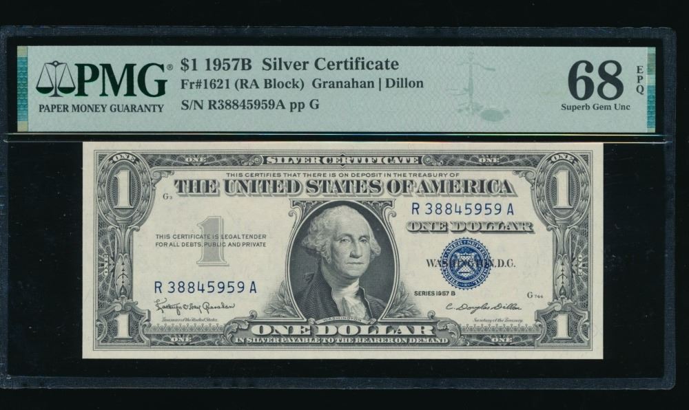 One 1957B $1 Silver Certificate PMG 68EPQ.