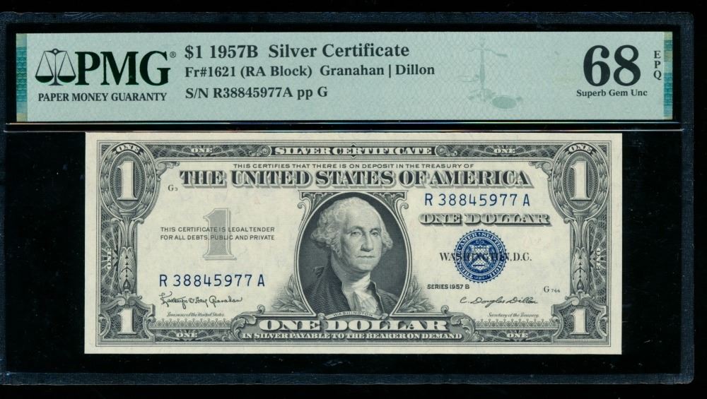 One 1957B $1 Silver Certificate PMG 68EPQ.