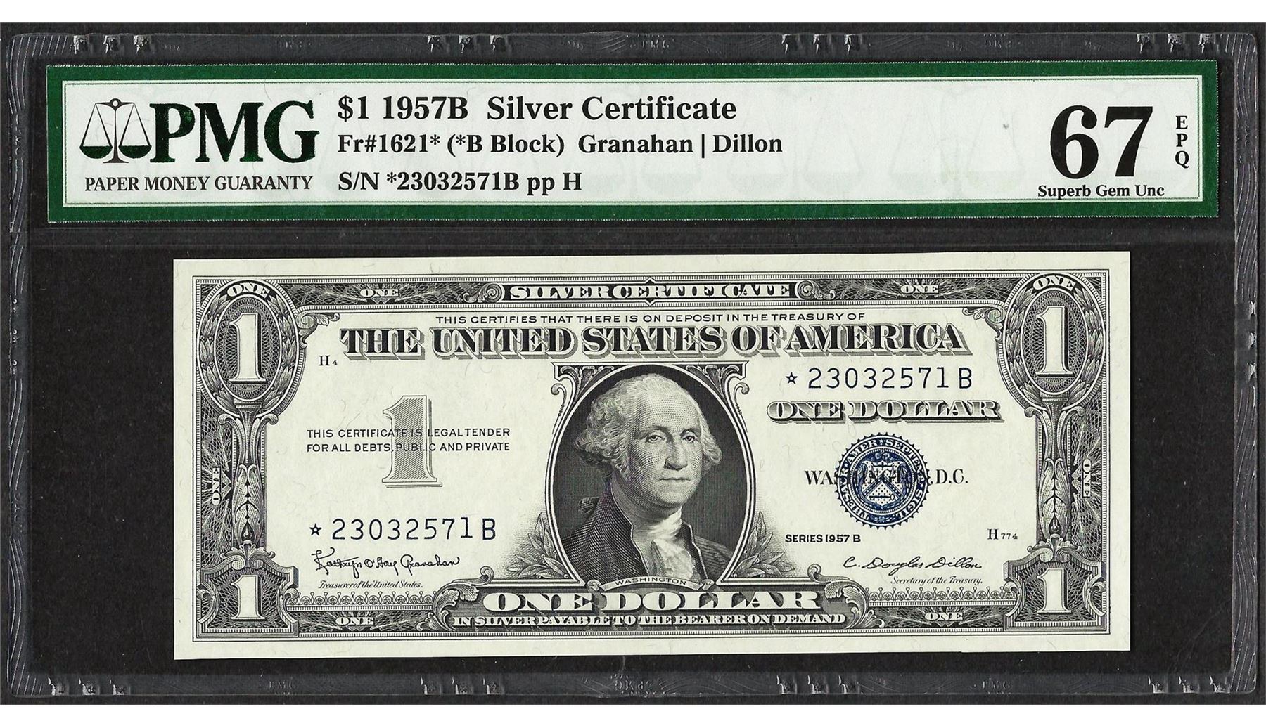 1957B $1 Silver Certificate STAR Note Fr.1621* PMG Superb Gem Uncirculated 67PPQ