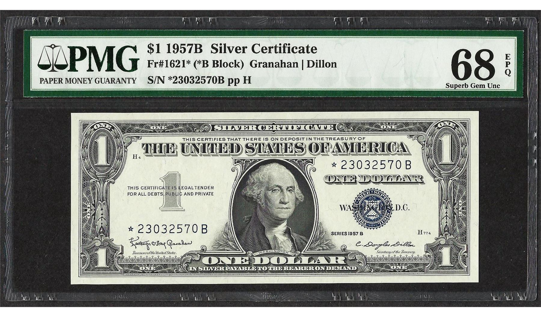 1957B $1 Silver Certificate STAR Note Fr.1621* PMG Superb Gem Uncirculated 68PPQ