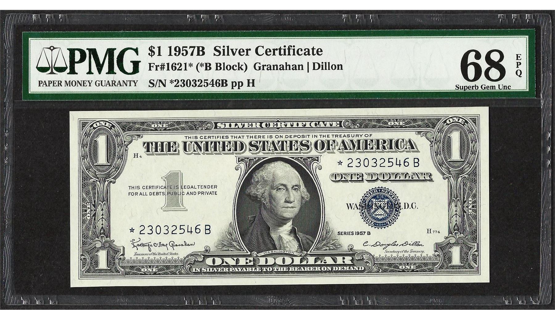 1957B $1 Silver Certificate STAR Note Fr.1621* PMG Superb Gem Uncirculated 68PPQ