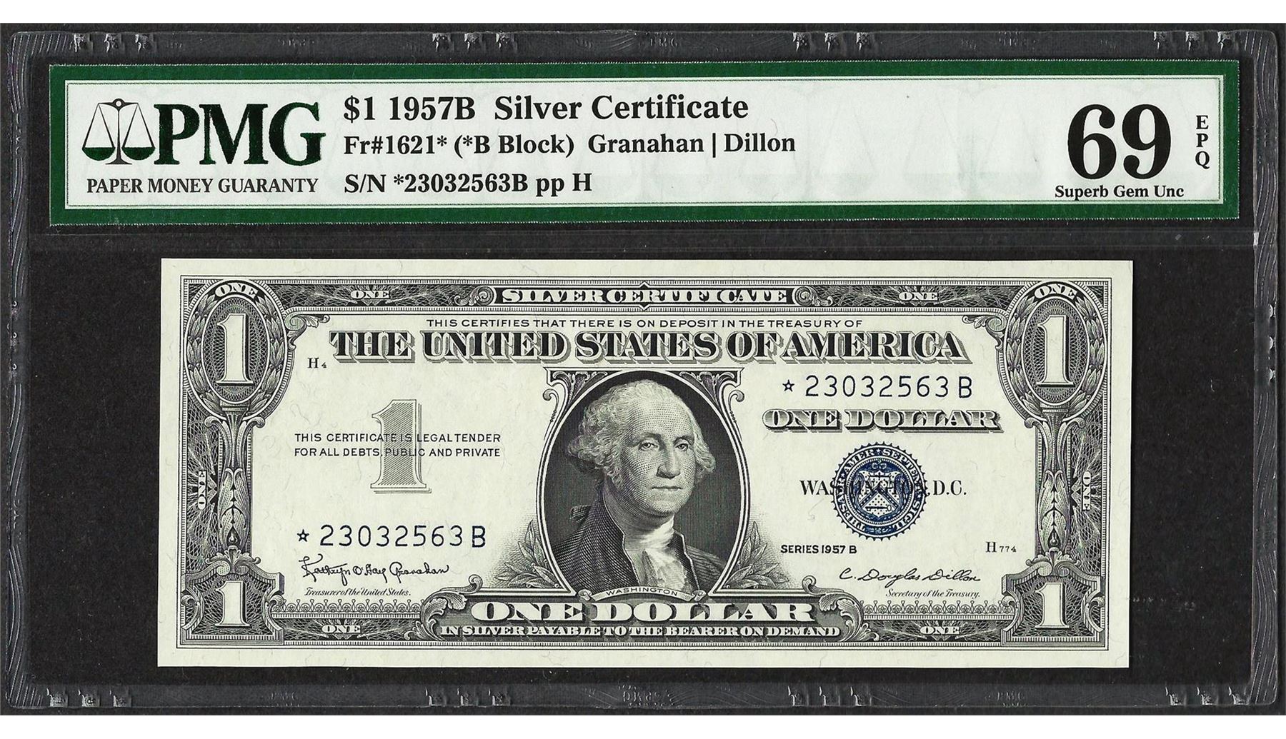 1957B $1 Silver Certificate STAR Note Fr.1621* PMG Superb Gem Uncirculated 69PPQ