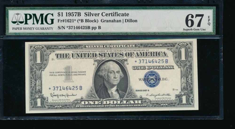 One 1957B $1 Silver Certificate STAR Note PMG 67EPQ.