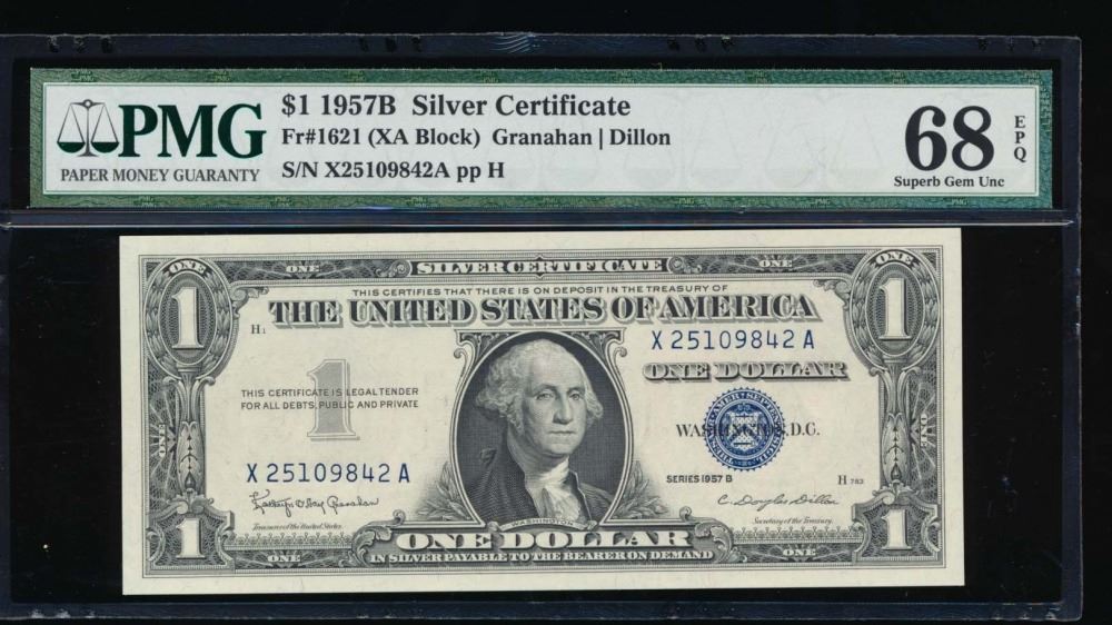 One 1957B $1 Silver Certificate Star Note PMG 68EPQ.