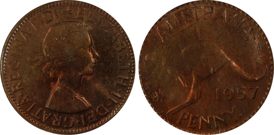 1957Y. Australian QEII Penny - PCGS MS 64RB