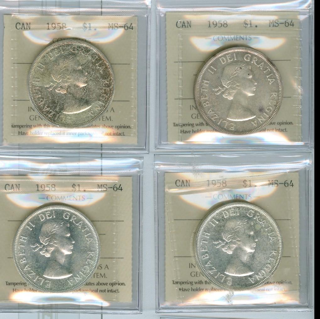 1958 $1 ICCS MS64. Lot of four coins all MS64.