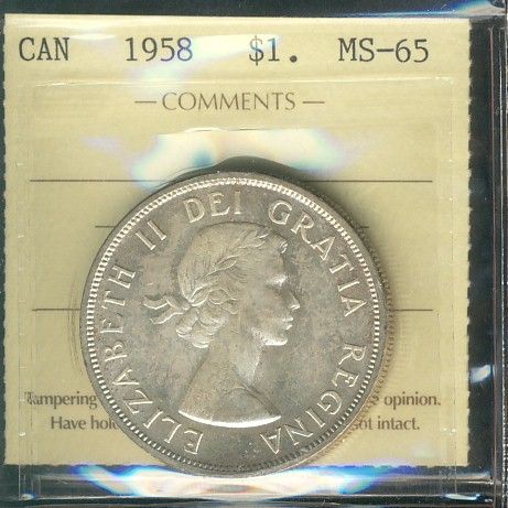 1958 $1 ICCS MS65. Attractive example.