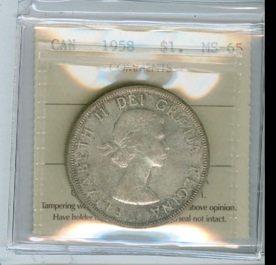 1958 $1 ICCS MS65. Gem Elizabeth issue with attractive russet toning.