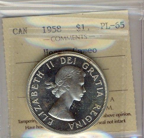 1958 $1 ICCS PL65 Heavy Cameo