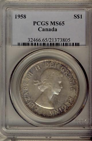 1958 $1 PCGS MS65. Attractive autumn shades.