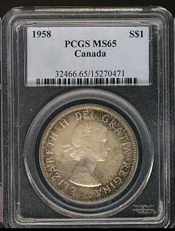 1958 $1 PCGS MS65. Gem tones, great eye apppeal.