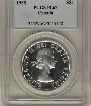 1958 $1 PCGS PL67. Flawless, rare this nice.