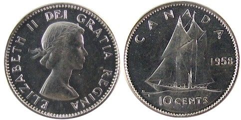 1958 10 Cents, ICCS MS66; Cameo.