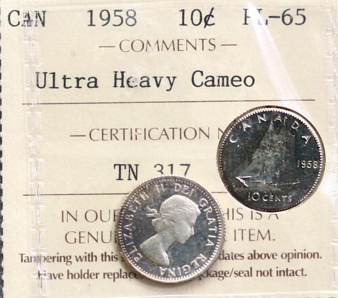 1958 10¢ ICCS Gem Proof-Like-65 Ultra Heavy Cameo