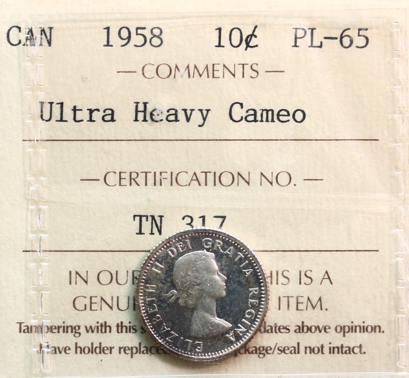 1958 10¢ ICCS Gem Proof-Like-65 Ultra Heavy Cameo
