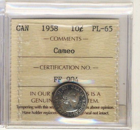 1958 10¢ ICCS PL65 Cameo.