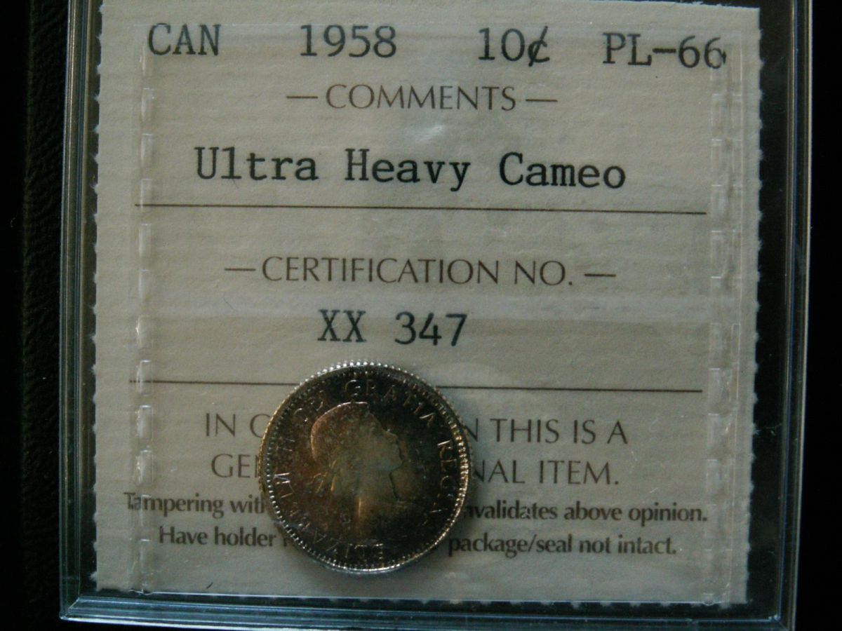 1958 10¢ ICCS PL66 ULTRA HEAVY CAMEO. Tied for finest graded.