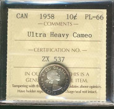 1958 10¢ ICCS PL66 Ultra Heavy Cameo.