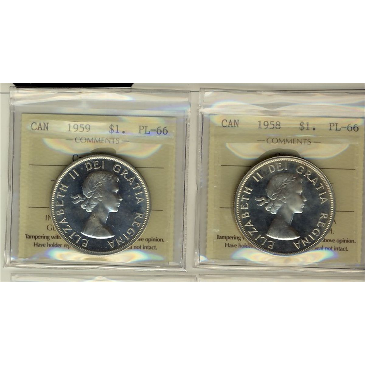 1958 & 1959 $1 ICCS PL66 Cameo. Lot of 2 coins.