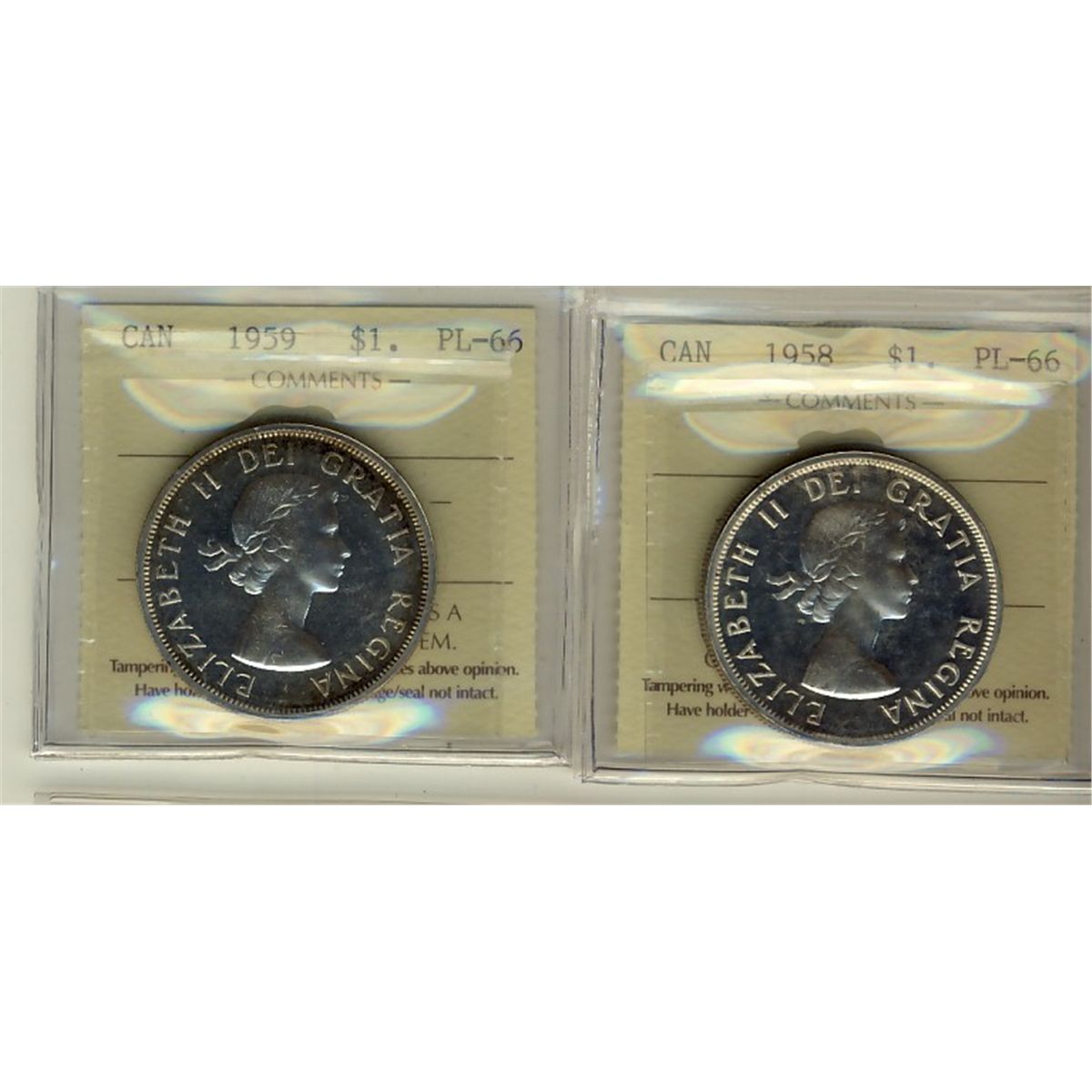 1958 & 1959 $1 ICCS PL66. Lot of 2 coins.