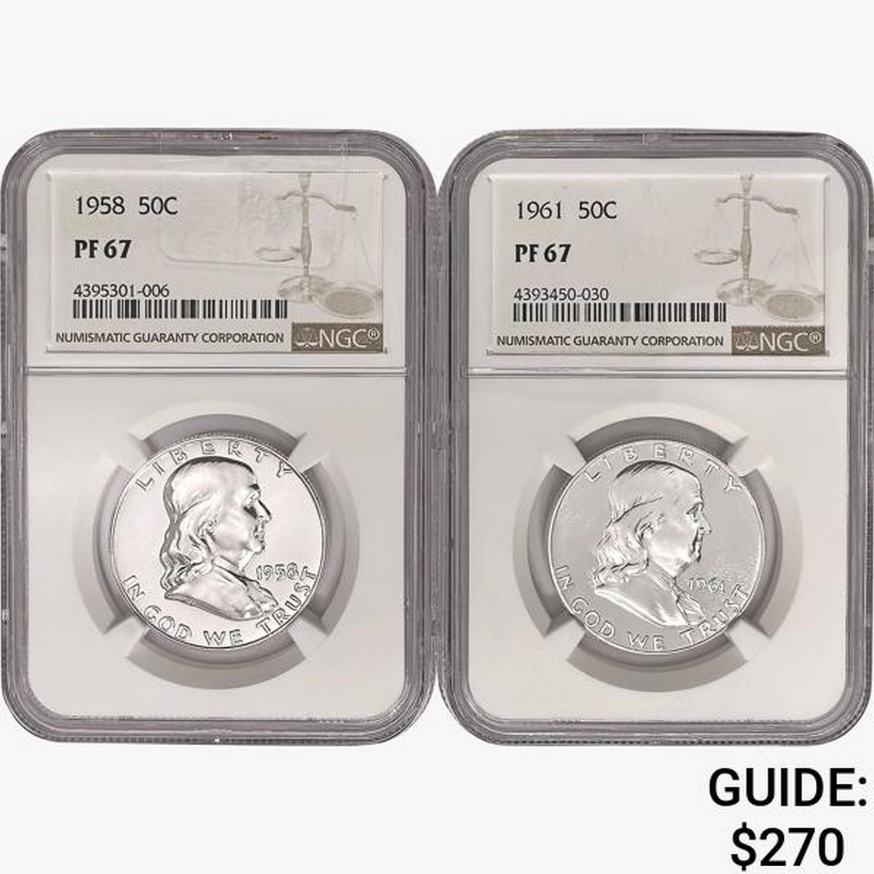 1958, 1961 (Set 2) Franklin Half Dollar NGC PF67
