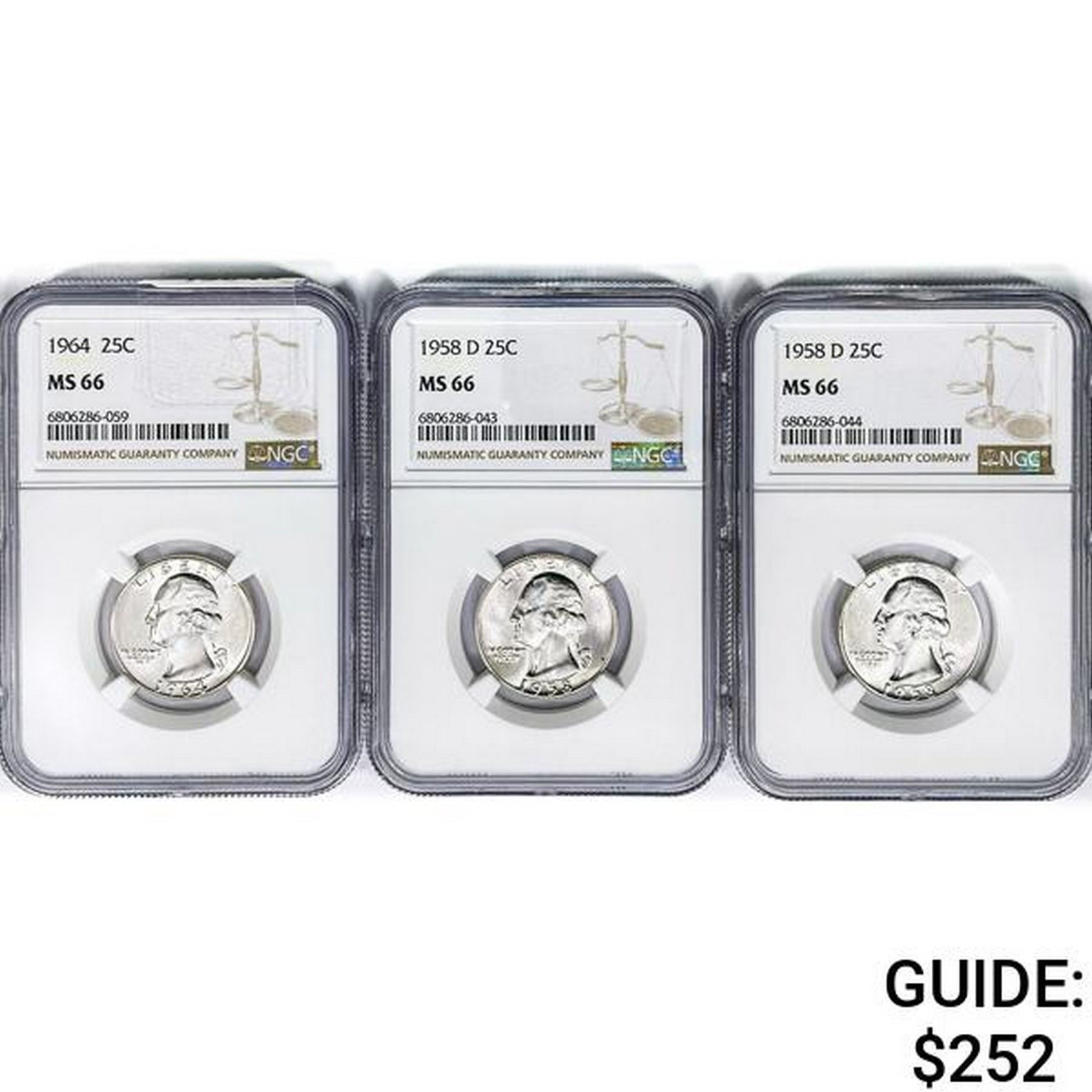 1958-1964 [3] Washington Silver Quarter NGC MS66