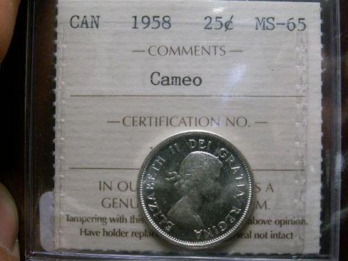 1958 25¢ ICCS MS65 Cameo. White and brilliant.