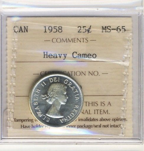 1958 25¢ ICCS MS65 Heavy Cameo.