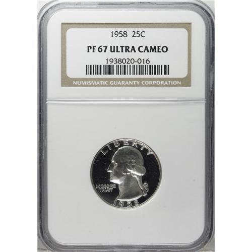 <B>1958 25C PR67 Deep Cameo NGC.</B></I> NGC Census: (18/6). PCGS Population (20/22). Numismedia Wsl. Price: $600. (#95990)<BR><BR><b>Shipping:</b> Coin/Currency (<a target="_blank" href="http://www.heritageauctions.com/common/shipping.php">view shipping information</a>)