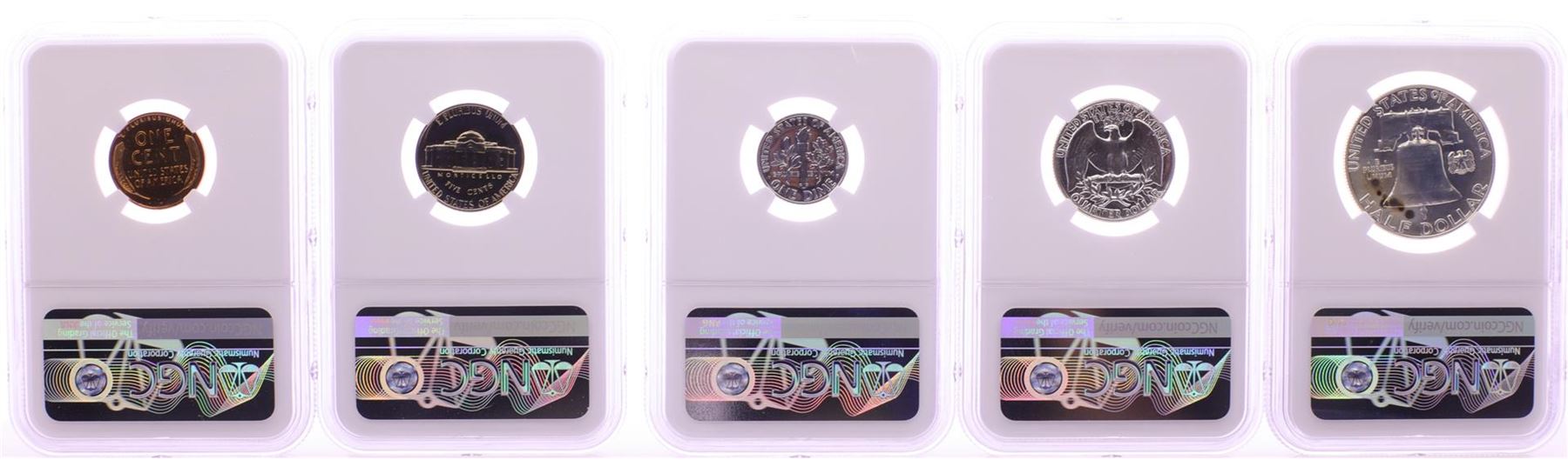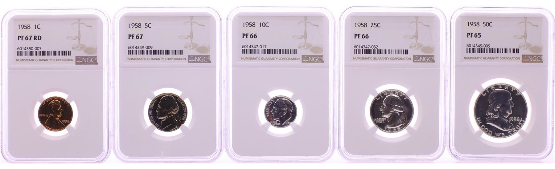 One 1958 (5) Coin Proof Set Graded NGC PF65/66/67. NGC Certified.