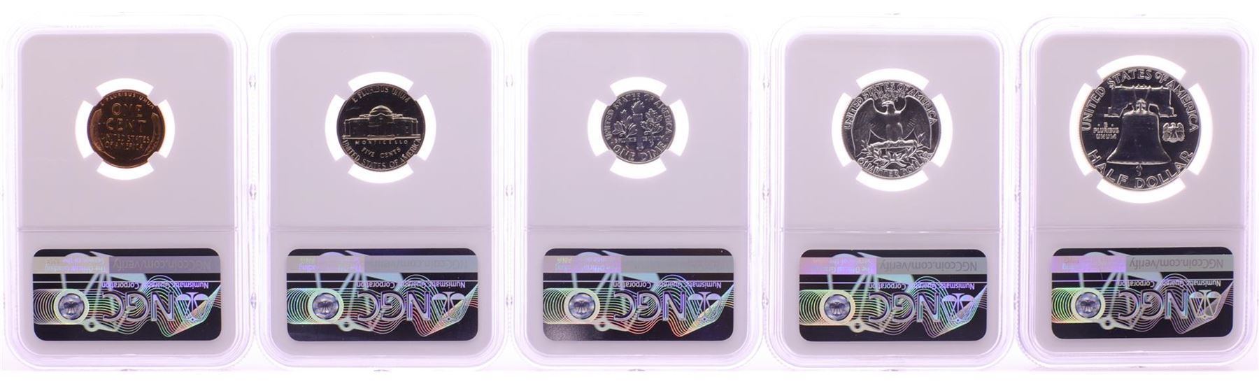One 1958 (5) Coin Proof Set Graded NGC PF65/66/67. NGC Certified.