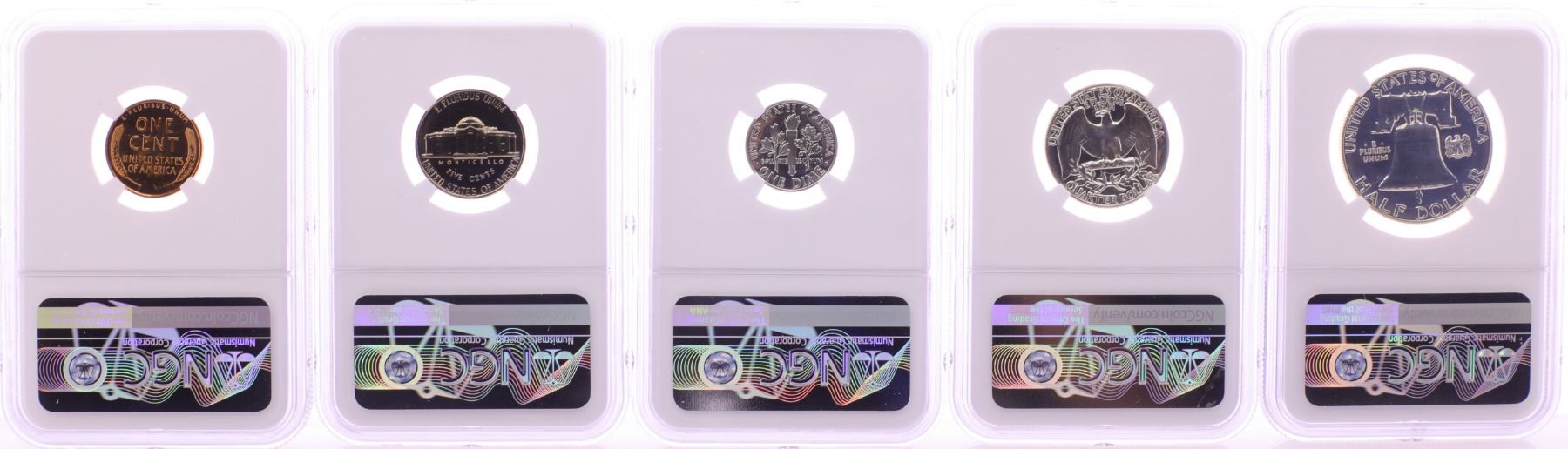 One 1958 (5) Coin Proof Set Graded NGC PF65/66/67.