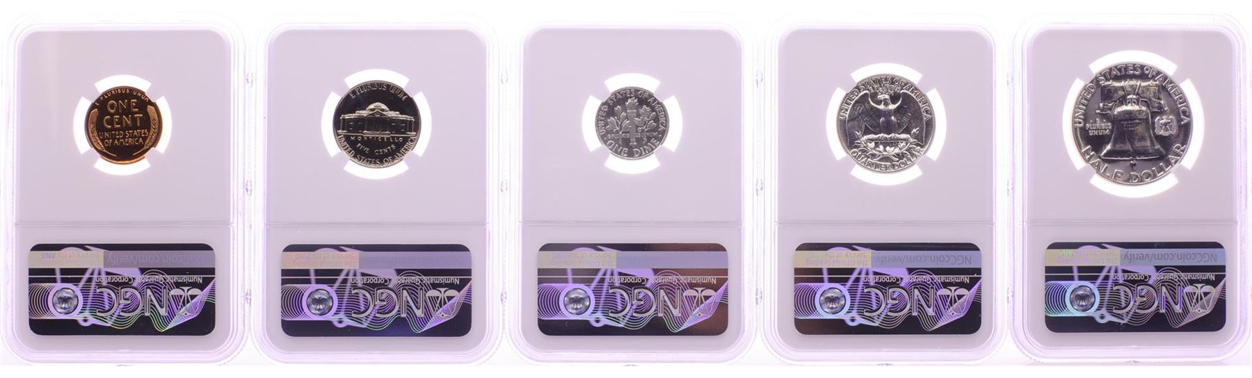 One 1958 (5) Coin Proof Set Graded NGC PF66/67/68. NGC Certified.