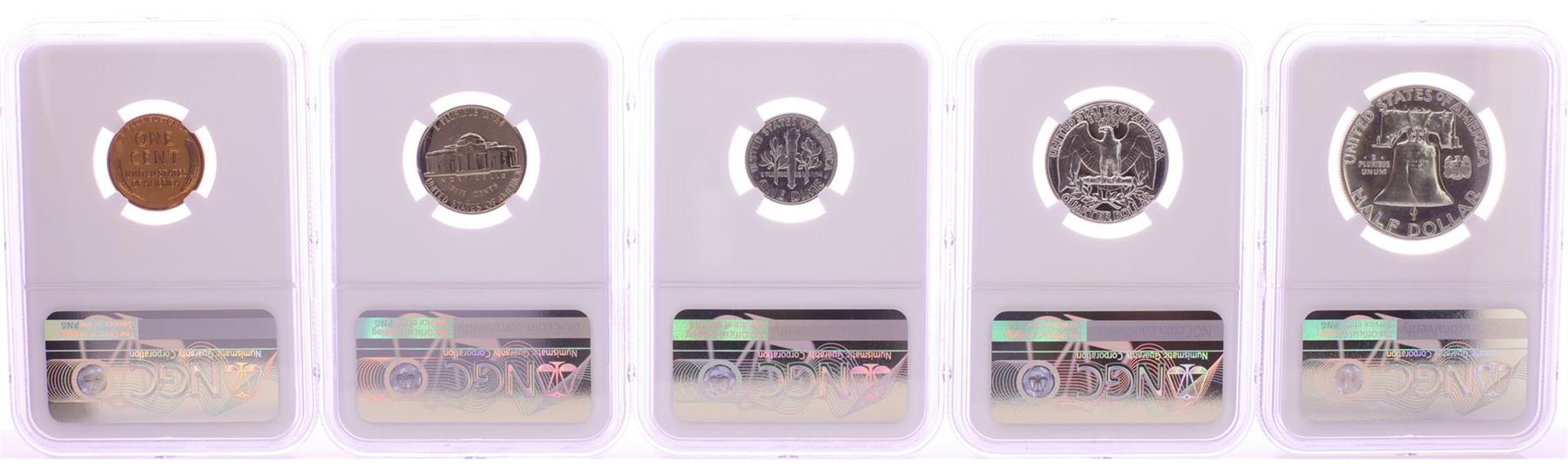 One 1958 (5) Coin Proof Set Graded NGC PF66/67/68. NGC Certified.