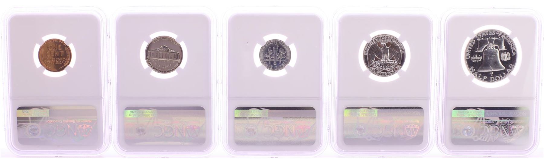 One 1958 (5) Coin Proof Set Graded NGC PF66/67/68. NGC Certified.