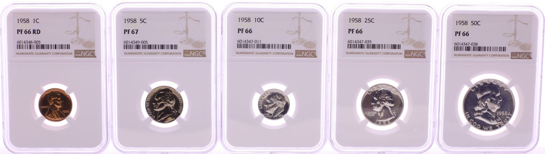 One 1958 (5) Coin Proof Set Graded NGC PF66/67.