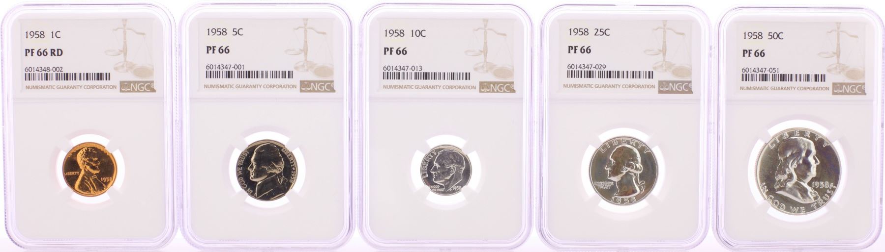 One 1958 (5) Coin Proof Set Graded NGC PF66.