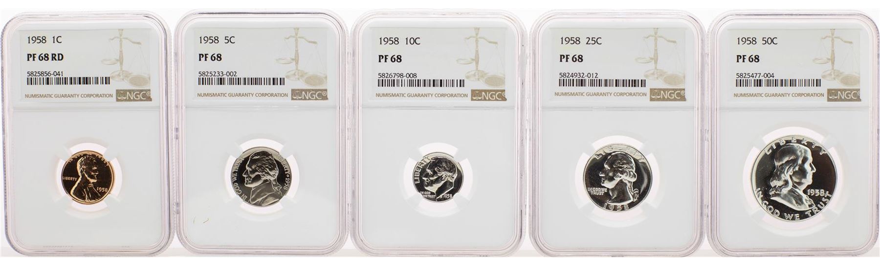 One 1958 (5) Coin Proof Set NGC PF68. NGC Certified.