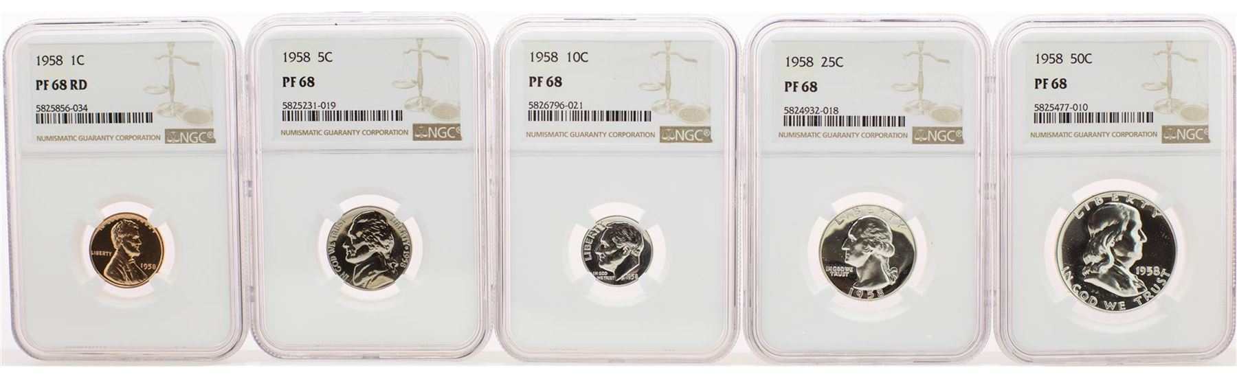One 1958 (5) Coin Proof Set NGC PF68. NGC Certified.