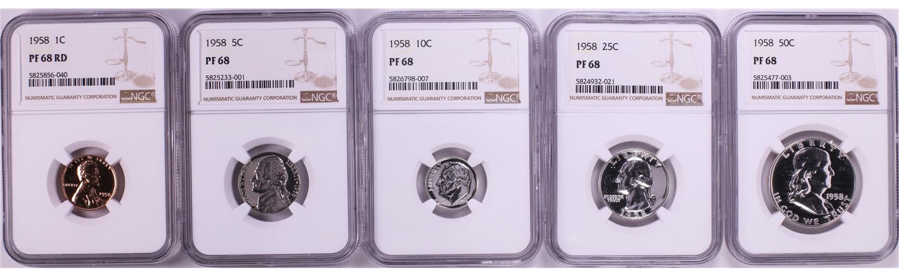 One 1958 (5) Coin Proof Set NGC PF68. NGC Certified.