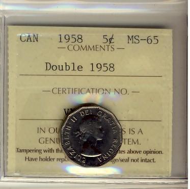 1958 5¢ Dbl Date ICCS MS65.